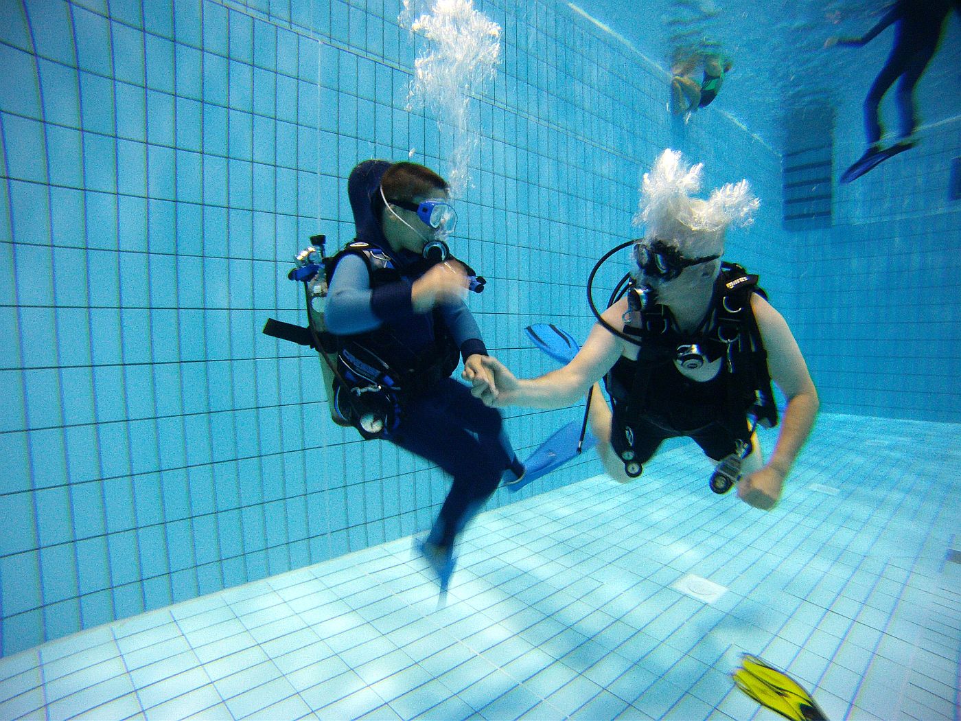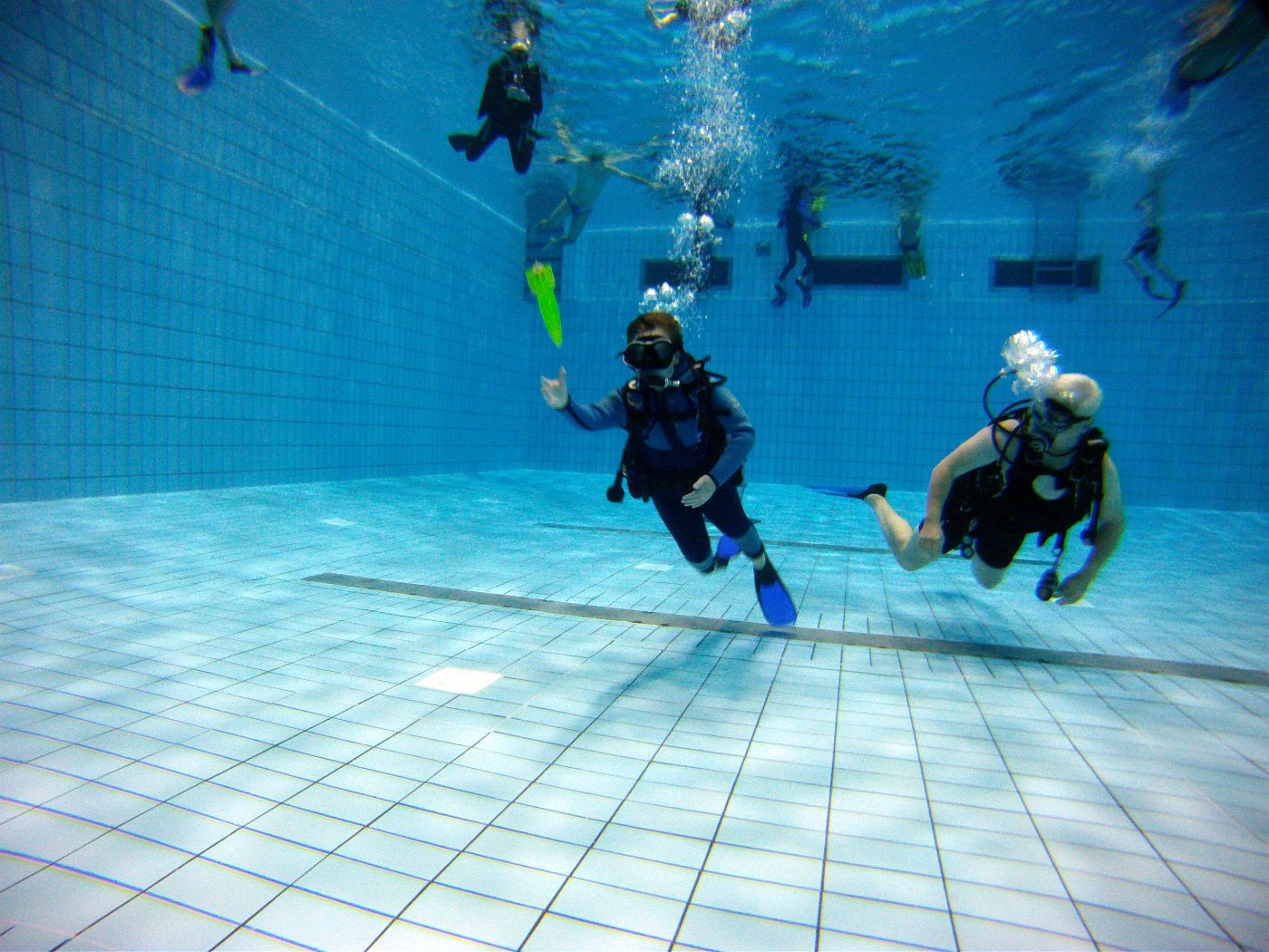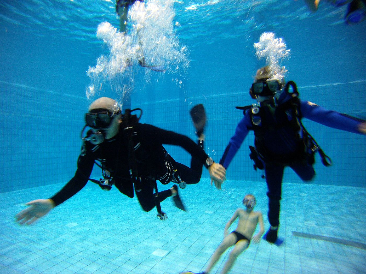 Die Ausbilder hatten hier das eine oder andere Unterwasserspielgerät mit dabei. So vergingen die gut zwanzig Minuten Tauchzeit pro Kind wie im Fluge.