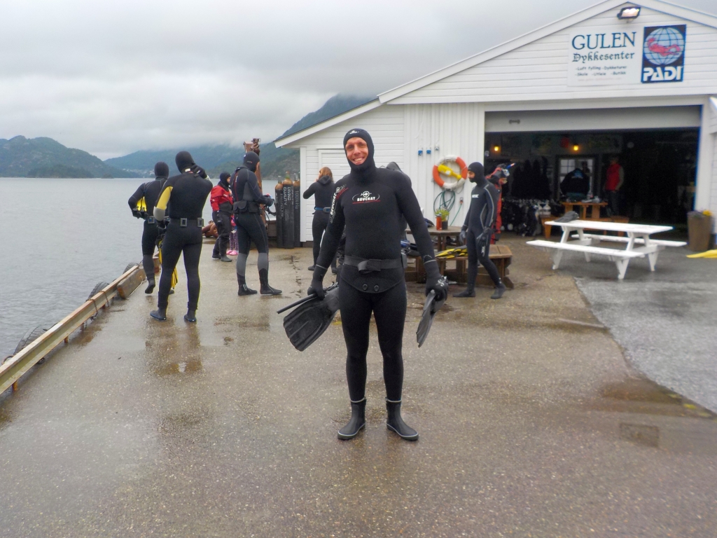 Mit unter den unerschrockenen Teilnehmer aber auch unser Vereinsvorsitzender Uwe Etzien, der in Norwegen seine TL2-Prüfung ablegen wollte. Nach über einem Jahr der Vorbereitung - die Theorieausbildung und -prüfung mussten absolviert, diverse Voraussetzungen erfüllt und die individuelle Tauchausrüstung optimiert werden - ging es am letzten Juni-Wochenende per Flieger nach Bergen. Den zweistündigen Transfer zum VDST-Divecenter, dem "Gulen Dive Resort" (www.divegulen.com) organisierte Hagen, der als Vorhut mit dem gesamten Tauchequipment per Bus gestartet war.