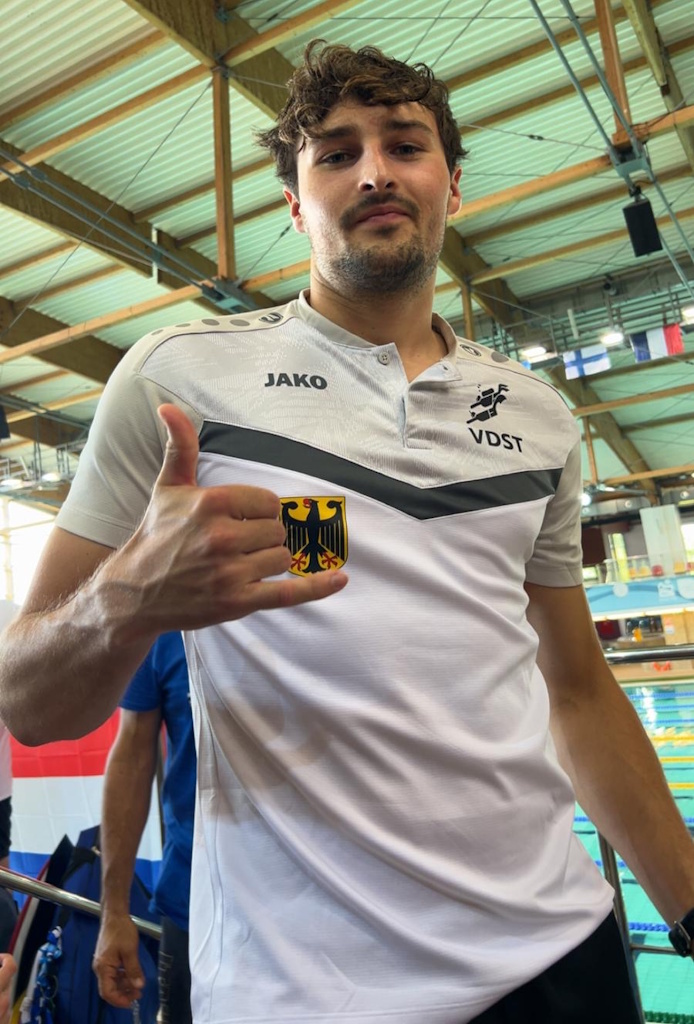 Am Sonntag war endlich auch Finn an der Reihe. Über 400m Streckentauchen hieß es Direktfinale. Es war ein Kopf-an-Kopf-Rennen bis zur letzten Bahn. Am Ende reichte es nicht ganz für Bronze, aber Finn kann stolz auf sich sein, denn mit seiner Zeit von 3:03.20 hat er seine Bestzeit verbessert. Das ist eine starke Leistung bei so einem großen internationalen Wettkampf. Am Abend hieß es dann nur noch feiern. Die Abendveranstaltung war für beide ein schöner Abschluss gemeinsam mit dem Team nach einem starken, aber auch nervenaufreibenden Wettkampf.