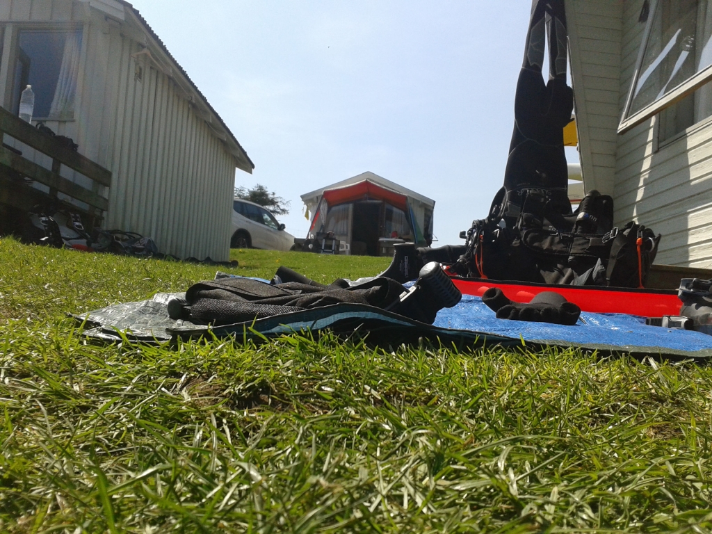 Am Campingplatz angekommen bezogen wir die altehrwürdige „Ausbilderhütte“ Hytte 4, der die Jahrzehnte inzwischen doch etwas anzumerken sind; die allerdings als Taucherunterkunft bei dem guten Wetter vollkommen ausreicht. Da die Preetzer erst am Donnerstag anreisten, ließen wir den Abend mit einer Begehung des Platzes und bei selbst gemachten Burgern am Grill ausklingen.