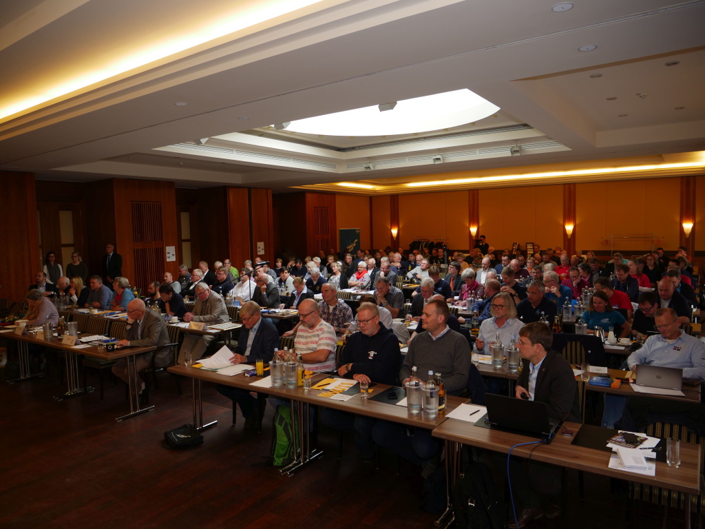 Während es für die Sportler erst Samstag Mittag wieder in der Schwimmhalle mit dem Pokal weiterging, trafen sich die Teilnehmer der Mitgliederversammlung bereits morgens im Steigenberger Hotel „Sonne“. Insgesamt waren Vertreter von 51 Vereinen angereist und über 460 Vereine ließen sich durch ihre Landesverbände vertreten. Von 6454 möglichen Stimmen waren somit 4564 Stimmen auf der Mitgliederversammlung anwesend. Sehr schön auch, dass viele Vereine unseres Landesverbandes nach Rostock gekommen waren und somit ihre Stimme direkt abgeben konnten.
