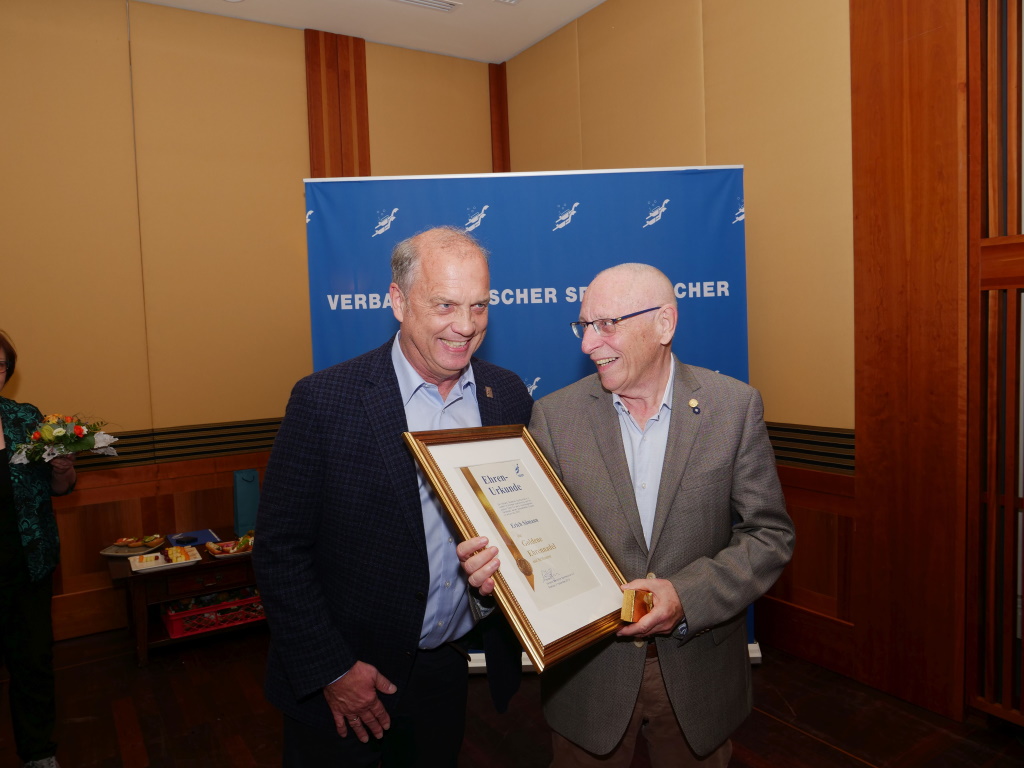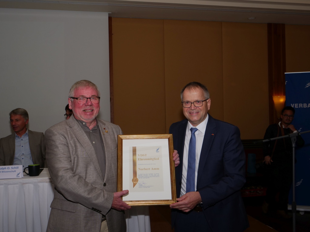 Für die neue Amtszeit standen die langjährigen Vorstandsmitglieder Franz Brümmer, Erich Sämann und Theo Konken nicht zur Wiederwahl. Wir sagen an dieser Stelle Dankeschön für die fast zwei Jahrzehnte geleisteter Arbeit und die Verdienste um den VDST! Der neugewählte Präsident Uwe Hoffmann ehrte den ehemaligen Präsidenten Franz Brümmer und den ehemaligen Vizepräsident Finanzen Erich Sämann mit der VDST Ehrennadel in Gold mit Brillanten.