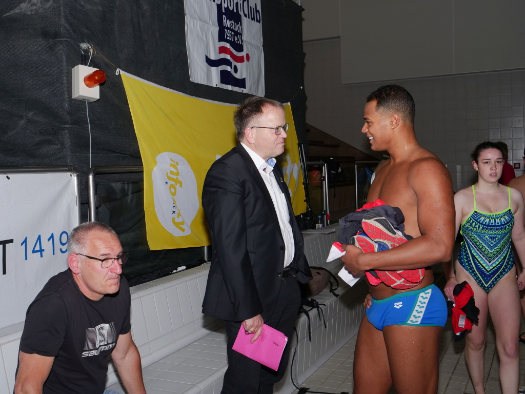 Auf der gemeinsamen Abschlussveranstaltung im Marmorsaal der Neptunschwimmhalle wurden die Sieger des Internationalen Pokals der Hansestadt geehrt. Die Gesamtwertung holte sich in diesem Jahr die Mannschaft aus Leipzig.