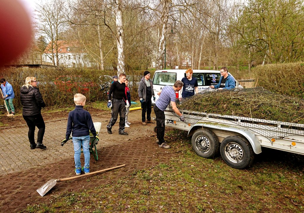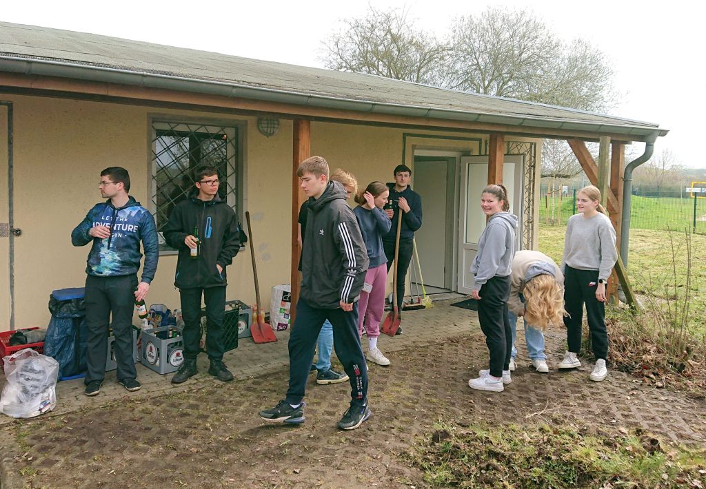 Nach Abschluss dieser Arbeiten war es an der Zeit, innerhalb und außerhalb des Gebäudes mal wieder richtig für Ordnung zu sorgen, kräftig auzuräumen und zu putzen. Hierfür trafen sich am dritten Wochenende im April fast 50 Helfer, Vereinsmitglieder, Eltern und Freunde, um kräftig Hand anzulegen. Mit solch einer großen Truppe ging es natürlich fix voran und nach einer kleinen Stärkung zum Mittag konnten die letzten Arbeiten abgeschlossen werden. Überall ist das Ergebnis dieses Frühjahrsputzes zu erkennen: Hecke geschnitten, Rasen gemäht, Einfahrt, Grillplatz und Parkflächen gereinigt, alles Holz gesägt und gehackt, Aufenthaltsraum und Waschraum geputzt, Lager aufgeräumt und entrümpelt und einiges mehr.