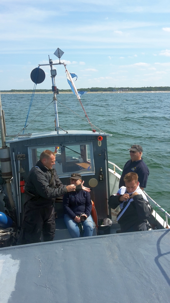 Zur Übergabe der Tauchlehrerurkunde ließ es sich Frank Ostheimer, stellvertretender Bundesausbildungsleiter und Landesausbildungsleiter in Hessen nicht nehmen, persönlich nach Rostock zu reisen. Bei bestem Sommerwetter überreichte er Robert Mitte August die Ernennungsurkunde. Den Rahmen dazu bildete an diesem Tag ein schöner Tauchgang am Wrack vor Rosenort und ein geselliger Abend mit frisch geräucherten Forellen auf unserem Vereinsgelände in Papendorf.