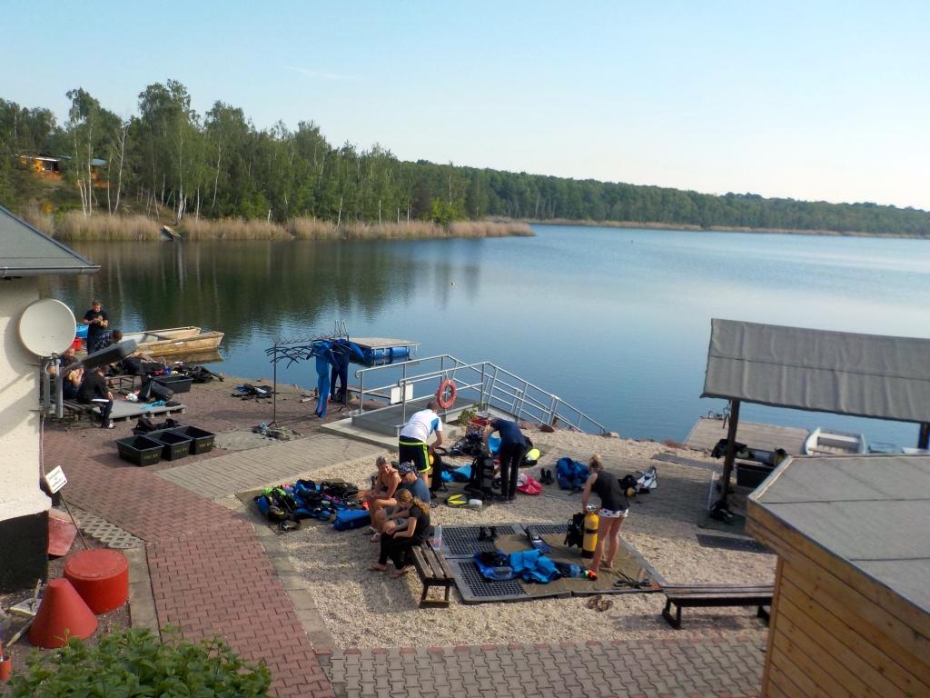 Die Schüler des TSC Rostock 1957 führt der Weg so für vier Tage nach Sandersdorf auf die Tauchbasis des TC Delitzsch. Zusammen mit den Wettkämpfern des TSC, die sich paralell auf das Orientierungstauchen vorbereiteten, konnten wir mit gut 30 Personen die hervoragenden Bedingungen an der "Förstergrube" nutzen. Für jeden Teilnehmer ging es so zweimal am Tag zur Ausbildung ins Wasser. Am Freitag Abend fand für einige ein dritter Tauchgang bei einsetzender Dunkelheit als Nachttauchgang statt, eine ganz spezielle Erfahrung, ist doch die Sicht auf den Lichtkegel der Unterwasserlampen reduziert. Auch das Wetter spielte an allen Tagen besten mit und so konnten alle die guten Bedingungen optmal nutzen und es gab am Ende einen großen Applaus für Zehn frisch gebackene Einstern-Taucher!